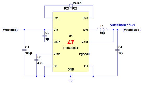 - Linear Technology LTC3588-1—Nanopower Energy Harvesting Power Supply. Available online: https://www.analog.com/media/en/technical-documentation/data-sheets/35881fc.pdf (accessed on 26 March 2024).