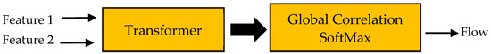 From Figure 2, the dense features that are taken from the convolutional backbone structure are sent to a transformer (matching space transformer [25]) which is used for feature enhancement, along with a correlation with SoftMax layer for the global feature matching. Additionally, a self-attention layer is employed for flow propagation. Then, we compare how similar the features are by connecting each pair of features. After that, a differentiable SoftMax mapping layer is used to obtain the flow forecast. To deal with pixels that are blocked or outside the boundaries, we add an extra layer of self-attention that uses feature self-similarity to spread the high-quality flow forecast from matched pixels to unmatched ones.