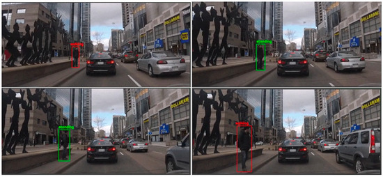 Figure 6 shows qualitative example predictions from our proposed hybrid stacked autoencoder model on the JAAD dataset. We can see that pedestrian stops and goes at junctions are still challenging to predict due to the absence of accurate vehicle speed and traffic light conditions. Furthermore, rapid changes in traveling direction, atmospheric conditions (such as rainy and snowy), and irregularities, such as construction workers, can all have a detrimental impact on projections.