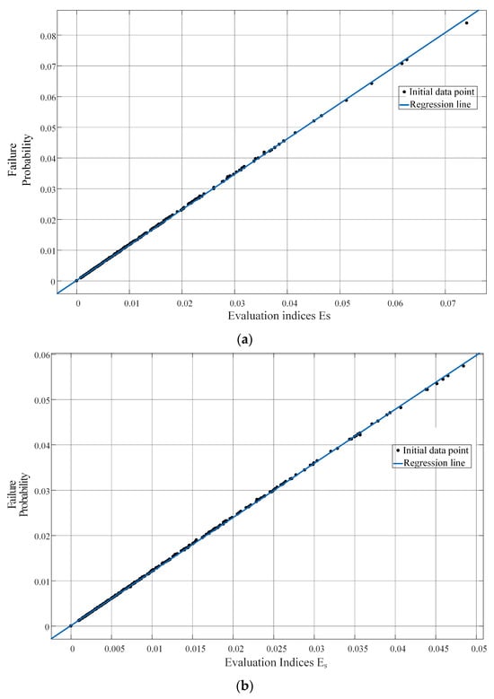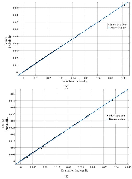It can be seen from Figure 10 that the evaluation indicators and failure probabilities of each HVDC transmission line had a strong linear correlation. The corresponding linear correlation index () and residual sum of squares (SSE) are shown in Table 2.