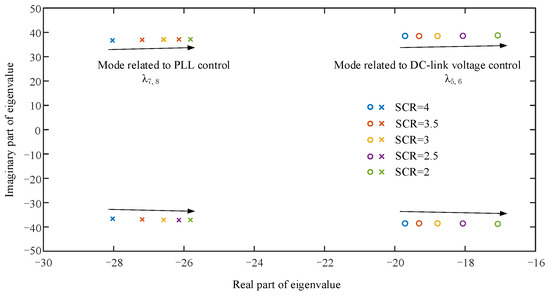 The eigenvalues of the small-signal model based on the excitation–response relationship and the eigenvalues of the state-space equation model [17,28,29] are compared to validate the proposed model for accuracy. Table 1 shows the eigenvalue analysis results for the two analysis methods.