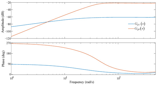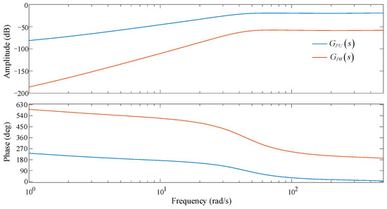Bode diagrams of and when the direct-driven PMSG is running under medium operating condition (P0 = 0.5 p.u.) are shown in Figure A1a. Bode diagrams of and when the direct-driven PMSG is running under the medium operating condition (P0 = 0.5 p.u.) are shown in Figure A1b.