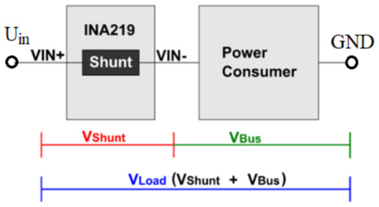 The offset was determined when output port −Vin of the first INA219 was directly connected (without a regulator) to input port +Vin of the second INA219 module, as is shown in Figure 8.