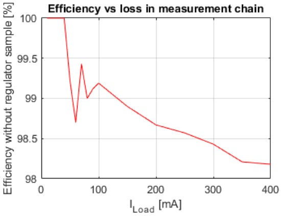 Before each efficiency measurement, an offset was evaluated. This offset represents the deviation of true efficiency η due to power losses in the measurement chain (between INA219 and load), as is shown in Figure 11.