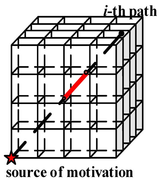 After discretizing the testing area into grids, sensors are deployed on the surface. With a total of M sensors and N grids, if the i-th ray traverses j-th grids, then combining Equations (11) and (12), the amplitude spectrum of the signal received by the i-th sensor can be derived as Equation (13), one of these paths is shown in Figure 3: