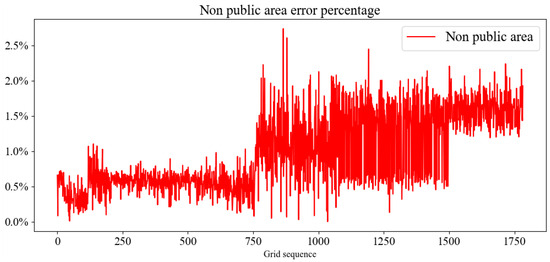 Figure 12 depicts the Q factor distributions along the propagation paths used for testing, as well as the Q factor distributions at the same locations output by the trained network. It can be observed that the overall numerical ranges are similar. Due to the dense arrangement of sensors, multiple paths inevitably intersect at the same grid in the final layer of the medium. To evaluate the discrepancy between the network’s output values and the true values, it is necessary to exclude the grids that are common to both the test and training sets, leaving only the grids intended for testing. Figure 13 illustrates the error between the predicted and true values for the remaining sections after removing the values at the common grids. The final MAPE (mean absolute percentage error) achieved is 0.972%, which indicates that the objective of this experiment is successfully met.
