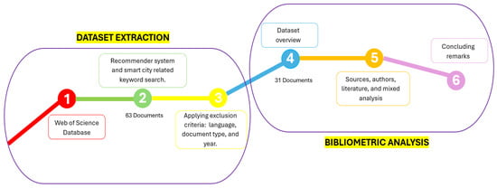 As broadly recognized, each bibliometric analysis begins with the meticulous documentation of the potential sources, optimal methods, and appropriate materials. Therefore, the primary objective of the current section is to shed light on the previously listed aspects, in an objective manner, giving readers a broader understanding of the steps followed for gathering and analyzing the dataset associated with papers in the area of recommender systems in smart cities.