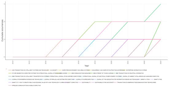 As can be observed, in the case of keywords plus, the most used words, each with three occurrences, were “architecture”, “challenges”, “framework”, “internet”, and “system”, while in terms of authors’ keywords, one can notice “recommender system” and “smart cities”, each with thirteen occurrences.
