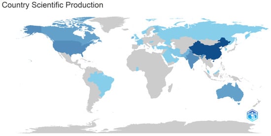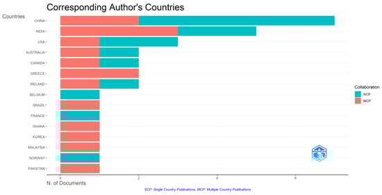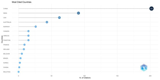 Furthermore, analysis revealed the involvement of only 15 countries worldwide in publishing articles within this domain, namely, China, India, the USA, Australia, Canada, Greece, Ireland, Belgium, Brazil, France, Ghana, Korea, Malaysia, Norway, and Pakistan.