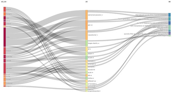 In the following, a mixed analysis was performed for the purpose of providing more in-depth information on this subject matter, highlighting the connection between different categories, such as countries, authors, journals, affiliations, and keywords.