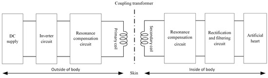 The artificial heart, as an advanced medical device, is utilized for treating patients with heart failure. It effectively replaces or supports the failing biological heart to restore its function, significantly avoiding issues related to donor shortages and post-transplant immune rejection commonly associated with heart transplantation strategies [1,2,3]. Moreover, a continuous and stable energy supply is one of the critical factors limiting the development of artificial hearts. In particular, the question of how to safely and efficiently power the implanted artificial heart remains crucial. Wireless power transfer technology is regarded as an effective solution to ensure stable power supply to artificial hearts while eliminating the need for transcutaneous wires, thereby significantly reducing the risk of infection. The adoption of wireless power transfer technology enhances the freedom and comfort of patients using artificial heart devices, offering them a higher quality of life during treatment [4,5,6].