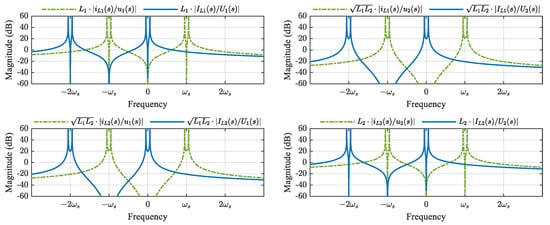 In (1), iL1 and iL2 are taken as the output because they are directly coupled with the sources. The transfer functions from u1 and u2 to iL1 and iL2 deduced from (1) are expressed as