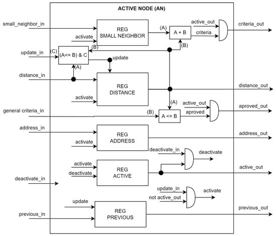 During the simulation and testing stage, it was observed that the maximum number of active nodes depended on certain graph characteristics, such as the total number of nodes, and the maximum number of connections per node. Since the active nodes are stored in the AN modules, an insufficient number of AN modules leads to errors. For instance, in situations where a neighboring node of an approved node cannot be stored due to space constraints, system crashes will occur. On the other hand, an excessive number of AN modules can result in a waste of resources. Therefore, it is necessary to use a value equal to the maximum number of simultaneously active nodes.