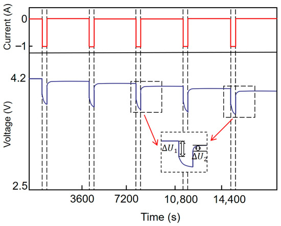 According to the second-order RC circuit model and pulsed charging characteristics, the parameter relationship can be expressed by the following formula: indicates the resistance that varies with the charging process; indicates the charging current; indicates the discharging current; indicates the charging time; indicates the discharging time; and indicates the actual state of charge of the lithium-ion battery, which varies with the charging and discharging time.