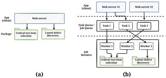 Data mining based on defective chips inevitably takes a long time. About 5 min of data processing time is required to analyze 50 GB of chip data. In the current implementation, the web server is used as the user interface, but the user has to wait in front of the web browser for 5 min, and the web server also has the main thread waiting, so other tasks such as user interface updates and user requests cannot be performed. To alleviate this limitation, we adopted Task Queues and Asynchronous Tasks. Using a Task Queue, load balancing and job scheduling are calculated based on subscribing workers on the task queue. Figure 6 shows the architectural view of the asynchronous execution.