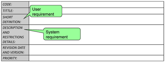 - Wiegers, K.E.; Beatty, J. Software Requirements; Pearson Education: London, UK, 2013. [Google Scholar]