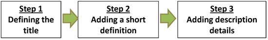 The SURE format includes a section called “short definition” that provides a synopsis of the properties that the system is required to manage for a particular entity. As shown in the example of Figure 3, the data usually relate to the fields that require updating, recording, or those considered as search fields. More examples of short definitions of FRs are shown in Table 2.