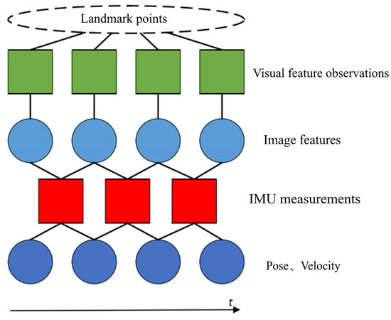 Figure 7, visual feature measurements can be obtained through visual sensors. Subsequently, corresponding image feature information is derived using relevant algorithms. By integrating these with IMU measurements from the same time period, more accurate pose and velocity information can be acquired.