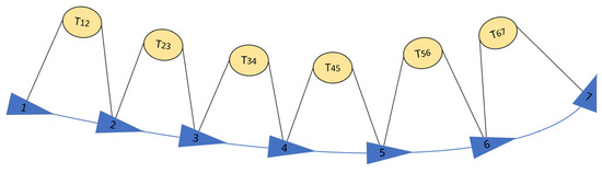 Figure 9, the triangles represent the drone’s motion posture at each moment, referred to as nodes in the optimization process. The circles represent the change between two consecutive motion postures, known as relative measurements, and in the context of optimization problems they are also called edges. In bundle adjustment (BA) optimization, the number of map points significantly exceeds the number of poses. If the system operates over a long duration, the number of nodes awaiting optimization increases, leading to slower solution speeds. To improve the solution speed, the concept of pose graph optimization emerged. The relative measurements between two motion states can be directly obtained through various sensors carried by the drone (inertial navigation, vision, and GPS).