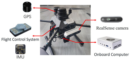 Figure 10. This platform was equipped with various sensors as previously described, including an inertial measurement unit (IMU), GPS, and depth cameras. Simultaneously, the sensor models and measurement frequencies used in the digital twin simulation platform matched those of the actual sensors. The GPS provided coarse positioning information at a frequency of 1 Hz, the IMU supplied high-speed dynamic attitude change data at 100 Hz, and the visual sensors delivered visual-assisted positioning information at a rate of 20 Hz.