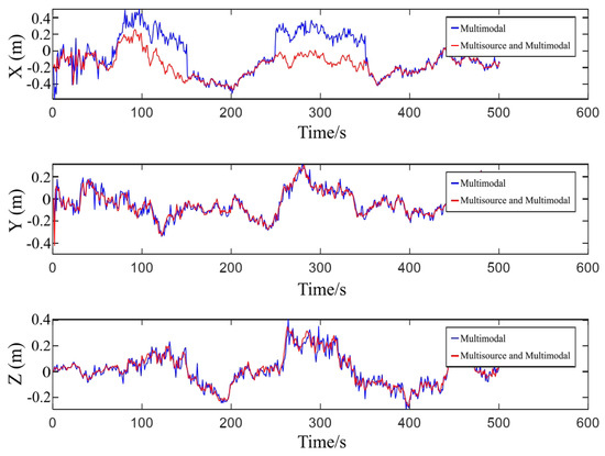 Figure 17, the fluctuation range of positional errors is relatively smaller and more concentrated, indicating the precision advantage of the fusion method.