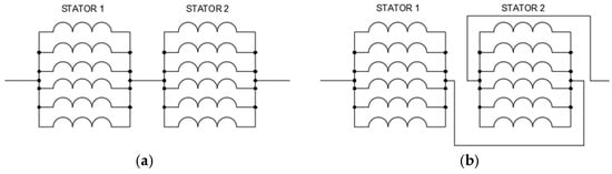 Stator connection diagrams: (a) basic series connection; (b) inverted stator connection.