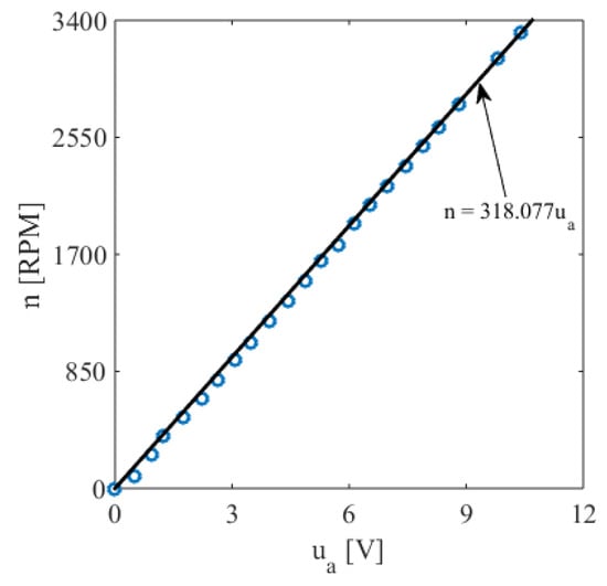 After motor modeling, the system of differential equations or the transfer function can be set up by system identification. The offline (batch method) or online (real-time method) least square parameter estimation are core methods to model identification [30,32,33,35,44,45,46]. The used measurement data and the steps of identification are detailed in Section 2, where the motor parameters (armature resistance and inductance, motor constant, moment of inertia, viscous friction constant) are identified directly from measurements based on the method shown in [20,30,31,34,39,47,48,49]. It will be proved that the mathematical model of the studied DC motor is linear so linear system modeling, identification and linear control methods can be studied in a comprehensive way. It is supposed that the motor parameters are constant and do not vary with time or temperature.