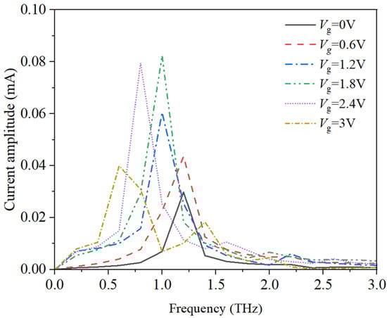 By applying voltage at the gate extreme to modulate the electric field distribution in the channel below the gate, the frequency of the oscillation current can be adjusted. Drain current characteristics under different gate voltages Vg are shown in Figure 9, where the field plate length of the field plate HEMT is set to 300 nm. As the gate voltage increases, drain current also increases. The reason is that the increase of Vg leads to an increase in the depth of potential wells in the AlGaN/GaN heterojunction, thereby affecting the density of two-dimensional electron gases and subsequently affecting the current. In addition, as the gate voltage Vg increases, the drain source voltage Vds required for current oscillation also increases. This is because the height of the Schottky gate barrier decreases with increasing Vgs, resulting in a decrease in the electric field in the channel below the gate. Therefore, a larger drain source voltage Vds is required to elevate the electric field to the negative differential mobility region, thereby generating electron domains.