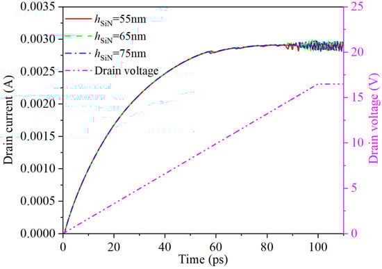 Transient drain current under different SiN passivation layer thicknesses (hSiN).