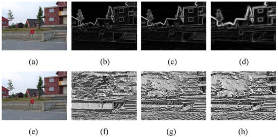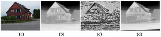 The feature descriptor based on the IFS-SIFT reduces computational complexity compared to the SIFT feature descriptor while maintaining high accuracy and accounting for the correlation of neighbouring pixels. When defining the direction of key points in SIFT, the gradient direction and magnitude of all pixels within a circle centred on the feature point and radiuses by 1.5 times the scale of the Gaussian image in which the feature point is located are counted. The 8-direction histograms of the key points are obtained by Gaussian filtering. When constructing the key point descriptor, the region is divided into 4 × 4 sub-blocks. The gradient magnitude of each direction is obtained by performing histogram statistics of 8 directions for each sub-block, resulting in a total of 128 dimensional descriptor vectors. The IFS-SIFT feature descriptor has the advantage of reflecting correlation between adjacent pixels due to its 48-dimensional vectors. In Figure 4, although gradient maps are adept at communicating information regarding the edges of an image, the presence of disparities in residual distributions can increase the model’s sensitivity to local features within the image task. Given the high performance of infrared images in the transmission of structural information, structural features should be accorded more attention in subsequent registration tasks. Intuitionistic fuzzy feature maps, which place more emphasis on global structural information, exhibit significant potential.