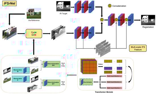 The network architecture of IFSrNet. IFSrNet is an end-to-end network that utilises pseudo-IR images created by generative model as the reference, which are fed into the registration network along with the target image registration.