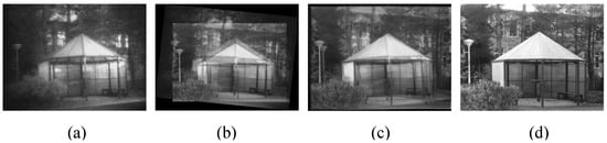 (a) Visible image as a reference. (b) Infrared images to be registered. (c) IFS-SIFT feature image. (d) Infrared image that has been registered.