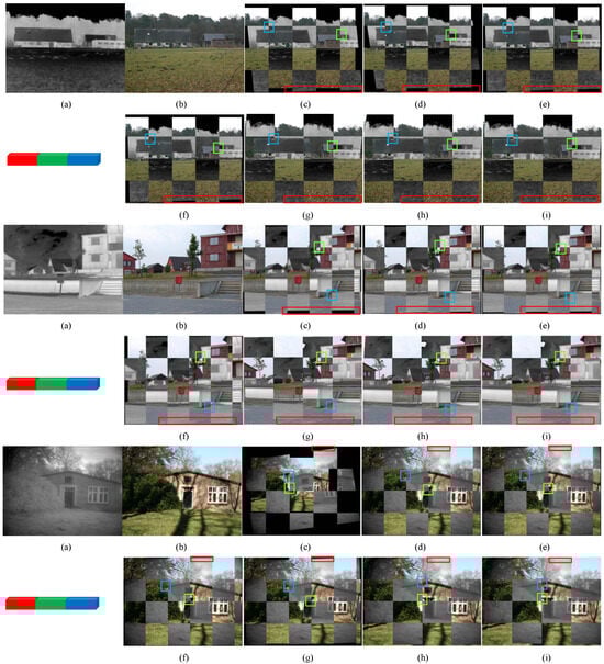 This study tested the average MAE, SSIM, PSNR, NMI, and LPIPS values obtained from 30 sets of multispectral images. The best performance is marked in red font, and blue is the second best.