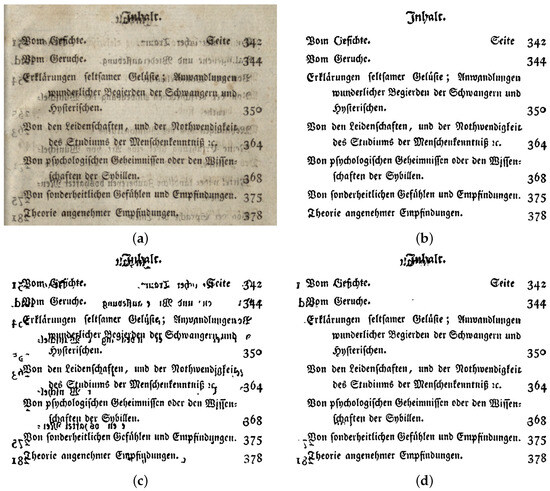 - Pratikakis, I.; Zagoris, K.; Barlas, G.; Gatos, B. ICDAR2017 Competition on Document Image Binarization (DIBCO 2017). In Proceedings of the 2017 14th IAPR International Conference on Document Analysis and Recognition (ICDAR), Kyoto, Japan, 9–15 November 2017; Volume 1, pp. 1395–1403. [Google Scholar] [CrossRef]