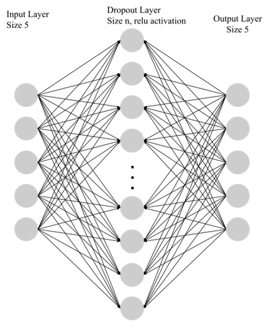 During the grid searching process, the following hyperparameters were chosen to be variable: learning rate, batch size, number of epochs, and layer size [32]. The values searched are shown in Table 3, and as expected, they can have a large impact on the network’s performance, accuracy, and generalization. In the process, each combination of searched values was iterated, and a new ANN was trained and tested using these hyperparameters. Each model was evaluated with a 3-fold cross validation, where for 3 iterations, the model was trained and tested with a new train/test subset of the data. This reduces the effect of any outlier trials.