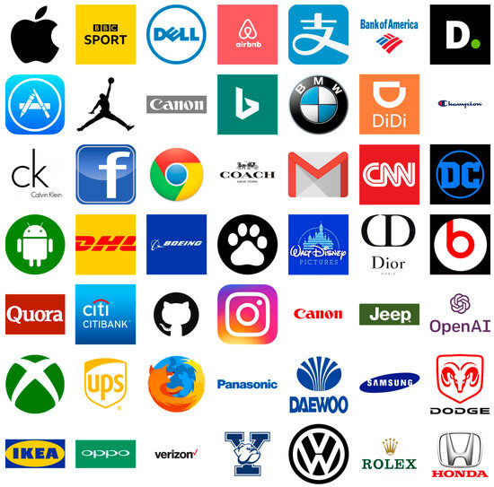 For the UP part, we used the logo625 dataset (Figure 4), a publicly available dataset developed through web crawling. Logo625 covers a wide range of common brand logos, including 625 categories across various domains, such as apparel, sports, leisure, and food. We used 100,000 images from this dataset for training, approximately 150–180 images per category. We chose this dataset because the logo data in logo625 mostly consists of pure foreground logo images without background information. So, the autoencoder mainly learns the representations of the foreground—the logos. And a small amount of data with background noise would not have a significant impact on our pre-training results. Therefore, pre-training on this dataset can make the encoder more capable of extracting logo features.