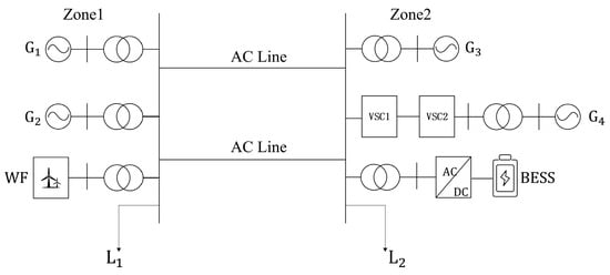 In this study, the wind farm (WF), BESS, and voltage source converter (VSC) stations are added to the four-machine and two-zone model of the MATLAB/Simulink simulation platform. Moreover, the active power control link is added to the converter. The topology of the system is shown in Figure 11. The computer configuration of the neural network training process is AMD Ryzen 7 5800H CPU and 16 G integrated graphics card.