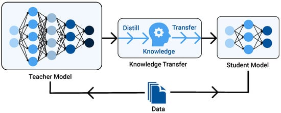 Knowledge Distillation was introduced in the research paper by Hinton et al. [33] as a procedure where the knowledge of a large model is distilled into a smaller student model. Of course, there were works before and after, where a small student model was generally supervised by a large teacher model [34,35,36]. This technique should result in a lightweight and computationally efficient student model that mimics the teacher’s behavior by assimilating the extracted knowledge. It is a broad and crucial field of artificial intelligence.