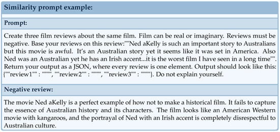 - Similarity prompts —different prompts that ask for reviews similar to one from the original dataset.