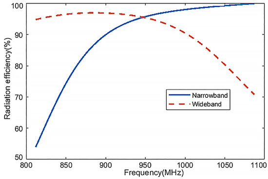 Radiation efficiency of both narrow-band and wide-band antennas.