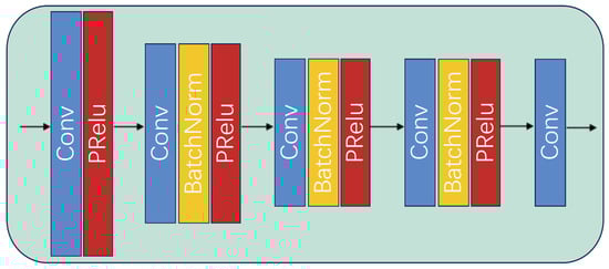 The discriminator of our method is inspired by the components of PatchGAN, and its detailed structure is shown in Figure 4. In general, the discriminator contains 5 convolutions, 4 activation functions, and 3 BatchNorms. The stride values of the first 3 convolutions are set to 2 and the other values are set to 1. Their kernel sizes are set to 4 and negative slopes are set to 0.2. After the first convolution, PRelu is attached as an activation function. Then the second convolution follows. Behind the second convolution, BatchNorm and PRelu are used. After the second PRelu, a convolution, a BatchNorm, and a PRelu are adopted. Behind the third activation function, a convolution, a BatchNorm, and a PRelu follow. Finally, a convolution is attached.