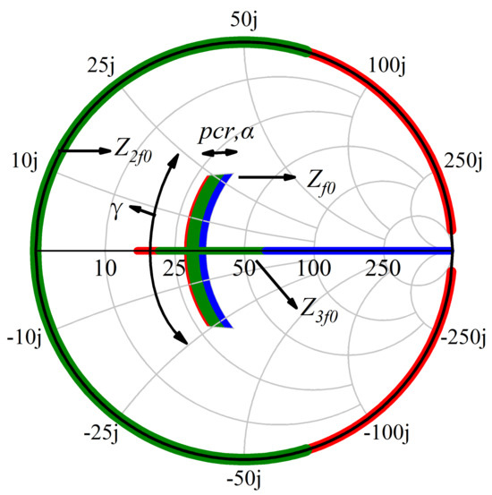 is the optimal fundamental load impedance, and , , and are the fundamental, second-, and third-harmonic load impedances of the UCCF mode, respectively.