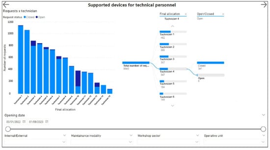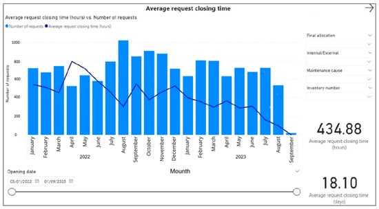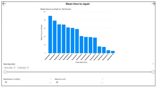 Finally, the dashboard has been implemented on Power BI rather than the ControlASSET® application, as the latter is not owned by the facility. Implementing this interactive corporate dashboard on the new application would be the optimal solution and would avoid the need to repeatedly extract data for calculation. This way, calculations could be performed immediately whenever necessary, and they could be accessible to various stakeholders in the maintenance process.