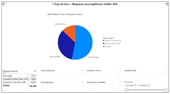 | One-Day Action | Calculation of the number of interventions carried out in less than 24 h | Process | All open request | All close request | All request | - | Percentage | |