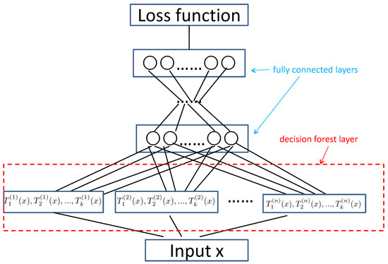 On top of the decision forest layer, we construct multiple fully connected layers which are widely used in neural networks. The input of layer is the output of the decision forest layer. We denote , , …, as the fully connected layers on top of the decision forest layer. Suppose , are the input and output (after activation) of (. Then, we have the following: