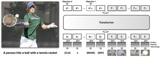 - Li, L.H.; Yatskar, M.; Yin, D.; Hsieh, C.J.; Chang, K.W. Visualbert: A simple and performant baseline for vision and language. arXiv 2019, arXiv:1908.03557. [Google Scholar]
