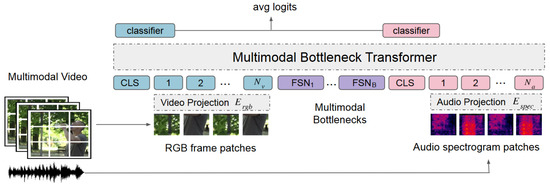 - Nagrani, A.; Yang, S.; Arnab, A.; Jansen, A.; Schmid, C.; Sun, C. Attention Bottlenecks for Multimodal Fusion. In Proceedings of the Advances in Neural Information Processing Systems 34 (NeurIPS 2021), Virtual, 6–14 December 2021; Ranzato, M., Beygelzimer, A., Dauphin, Y., Liang, P., Vaughan, J.W., Eds.; Curran Associates, Inc.: New York, NY, USA, 2021; Volume 34, pp. 14200–14213. [Google Scholar]