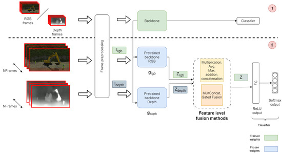 | Fusion score (late fusion) [33] | RGB and depth frames | Pre-trained VGG networks | MSRDaily activity 3D [49], UTD-MHAD [51], CAD-60 [64,65] |