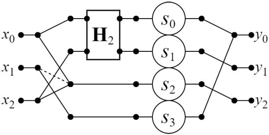 Now, we will move on to dealing with matrices and . In this case, a circular convolution matrix will be used []. The circular convolution matrix for N = 3 and the expressions for calculating the values are as follows: