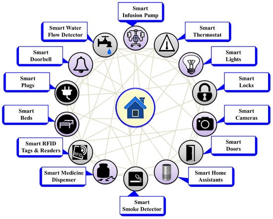 Figure 3 provides brief information on different ambient sensors used to create smart environments. These smart devices include smart infusion pumps and medicine dispensers, which transform patient dosage delivery systems by minimizing errors; additionally, smart thermostats, lights, locks, cameras, doors, home assistants, smoke detectors, beds, plugs, doorbells, and water flow detectors offer automated control, enhancing energy efficiency and ensuring security in homes, businesses, hospitals, and other settings. Detailed descriptions along with benefits, challenges, and integrations are provided in Table 3.